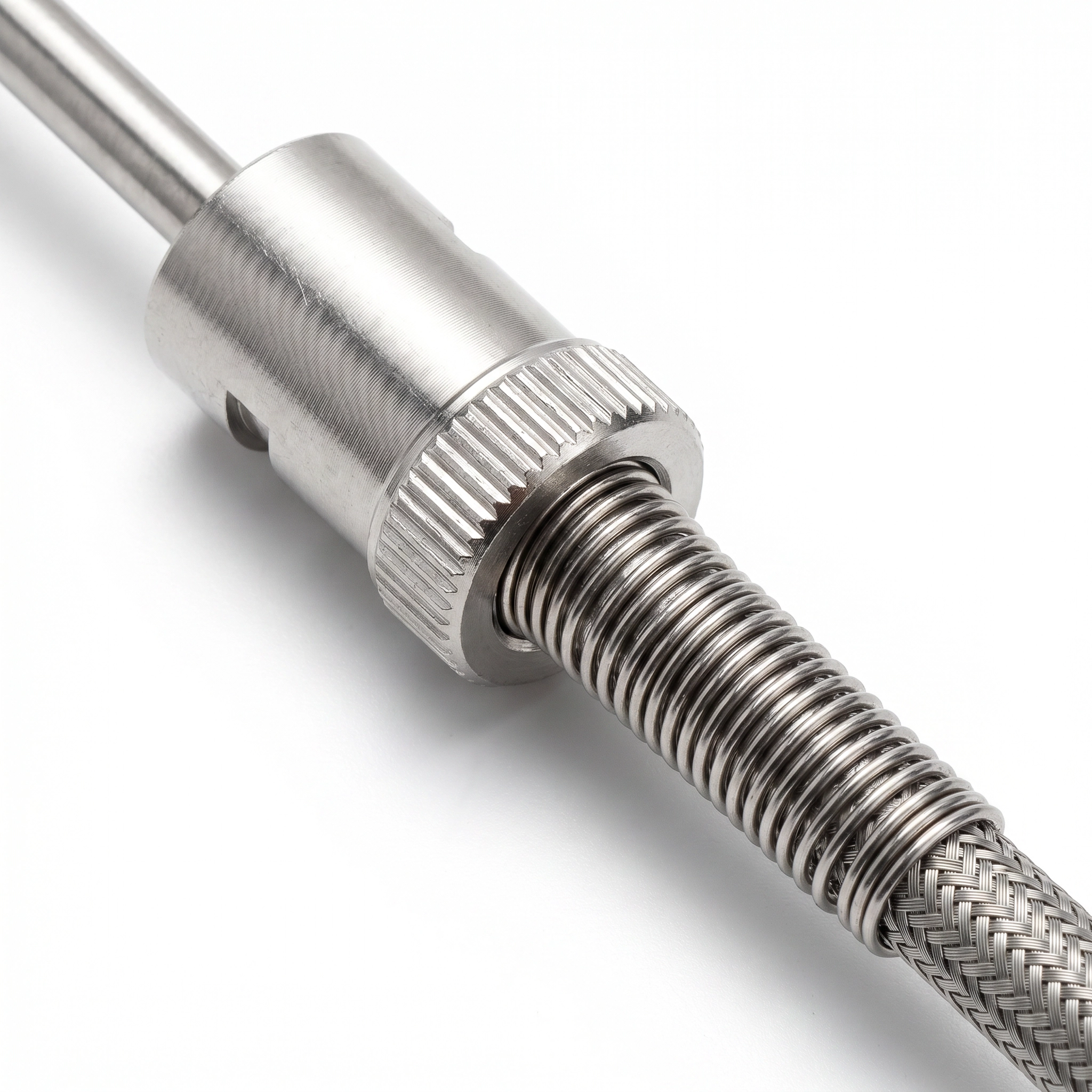Termopar industrial Tipo K com adaptador baioneta fixa M12 (não-ajustável) e mola de compressão para contato constante. Diferente do modelo K6 (ajustável), o TC-K7 possui baioneta com profundidade fixa, garantindo posicionamento preciso e repetível. Equipado com cabo blindado de 2 metros em malha de aço inoxidável trançado e junção aterrada para resposta rápida. Ideal para injetoras de plástico, extrusoras, fornos industriais, prensas térmicas e sistemas de aquecimento que exigem medição precisa e confiável de temperatura até 800°C.